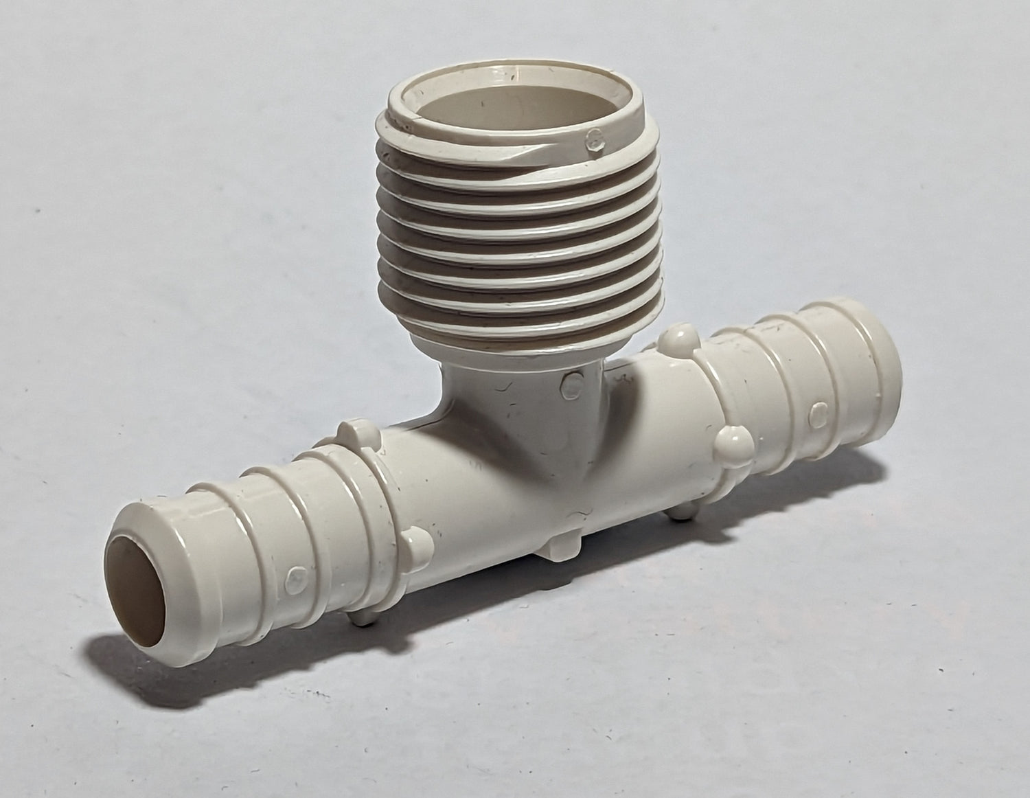 ½” PEX x ½” PEX x ½” MPT Plastic Tee - White - CUPC, NSF/ANSI 61 Compliant - Product Code PPTM555
